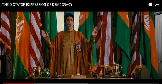 For comic relief, watch the following from the comedy, The Dictator (2012):